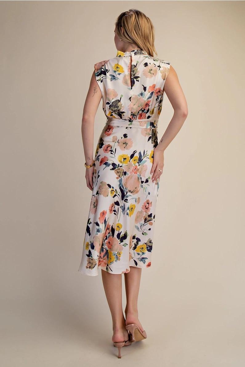 Ivory Floral Cowl Neck Midi