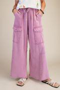 Discover effortless comfort in these mauve mineral-washed terry cargo pants. The relaxed wide-leg silhouette pairs perfectly with the soft, breathable 100% cotton construction for all-day wearability. Practical cargo pockets keep your essentials within reach, while the drawstring waist with scrunch detailing adds contemporary flair. Raw hem finishing and mineral washing create an on-trend, lived-in aesthetic that works as hard as you do—whether you're running errands or settling in for the weekend.