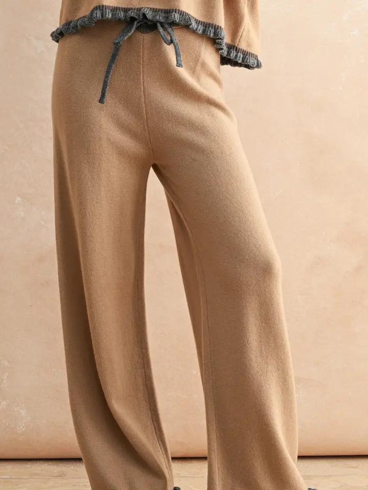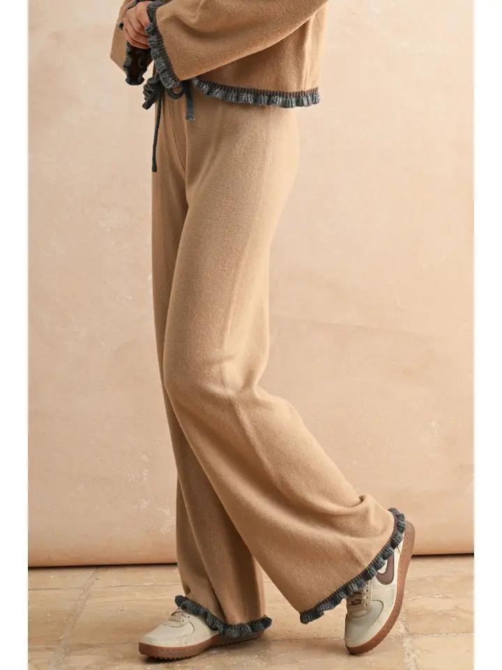 RUFFLED HEM KNITTED PANTS