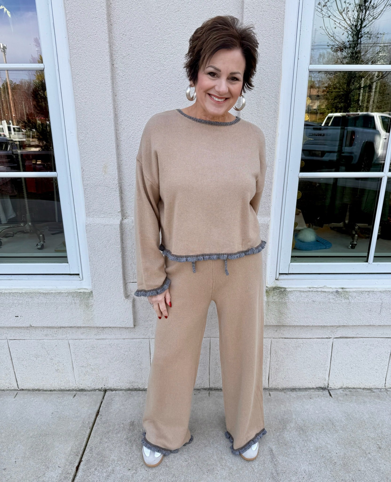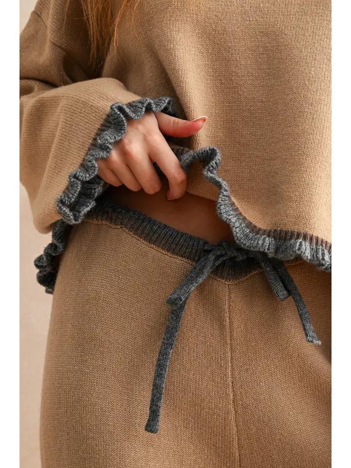 Mocha and Grey Ruffled Knit Set