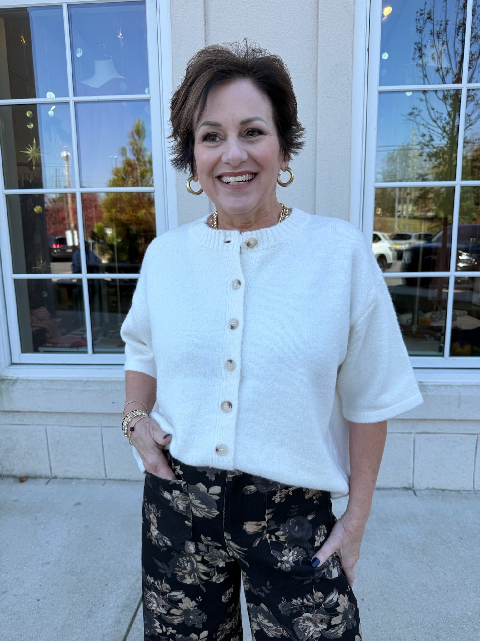 BRUSHED 1/2 SLEEVE BUTTON-UP SWEATER