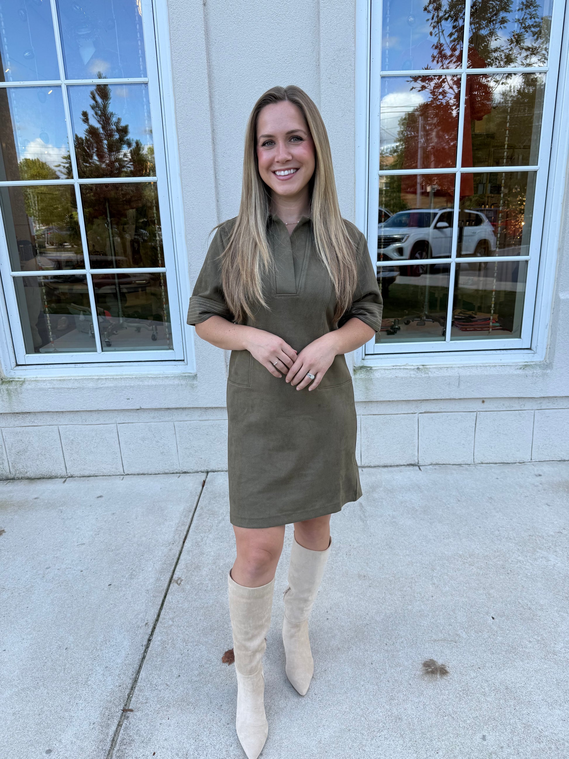 Verdigris Collared Suede Dress